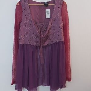 NWT Hot Topic Disney Hocus Pocus Sarah Peplum Top Spider Web Sleeves Size XL. Lace Up Bodice Sheer Peplum.