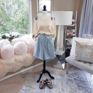 NWT House of Harlow light blue faux leather Bermuda shorts, S