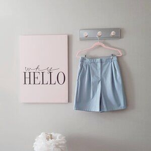 NWT House of Harlow 1960 light blue faux leather Bermuda shorts, S
