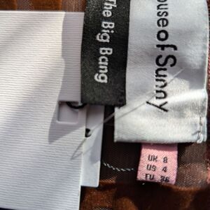 Falling head over heels for House of Sunny? We don't blame you. This London-based brand invites us into its 'Casa Amour' with a captivating crop top. The sheer fabric playfully contrasts with a soft, flocked checkerboard design. The love motif applique embroidered sheer top from House of Sunny lets you spice things up in a bold and fun style that will be unique to you. Crafted from airy mesh material, this brown piece will keep you feeling cool and comfortable while turning heads. This top is seen in a straight cut and cropped fit, and boasts a funky all-over applique 'love' pattern complete with tiny metal sun buttons on the front. Ideal for styling over a bralette, cami, or even a sleek bikini top, the Casa Amor Top is all about summer fun and keeping things spicy and hot wherever you go.