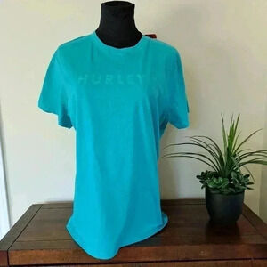 ❤️ NWT Hurley Women's Tee Medium 100% Cotton Blue Green Short Sleeved T-shirt