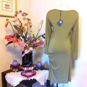 NWT I.AM.GIA Women's High Quality Long Sleeve V Neck Floral Embroidery Light Green Stretchy Midi Long Dress Size L could fit for 12 or 14