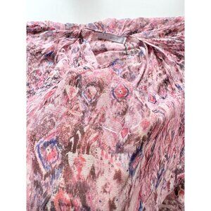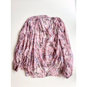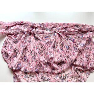 NWT IRO Pomea Pink Purple Ikat Sheer Silk Georgette Draped Blouse, Size 36/XS