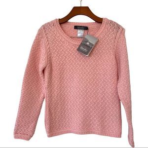 NWT ISLANDER MADE IN IRELAND ‘Glasson’ Scoop Neck Woven Textured Sweater PINK S
