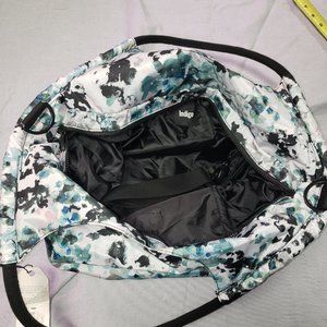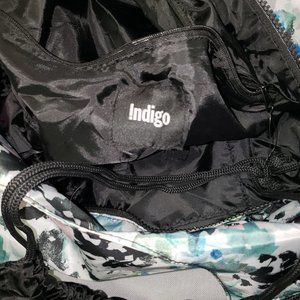 NWT indigo gym/weekend bag. Super light weight and airy like, double handle plus removable shoulder strap (handles atebig enough to fit over shoulder too) also includes a smaller nylon drawsting bag,. Main zip closure with 2 inside pockets, one zipper closure, the other no zipper. 2 outter pockets , one on each end both zipper close. Measurements in photos.