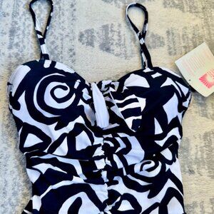 NWT It Figures! Tummy Thinner Black and White Swirl One Piece Swimsuit