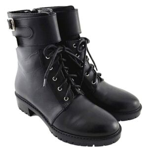 NWT Italian Shoemakers Black Leather Lace-Up Combat Short Boot Strap Buckle Sz 6