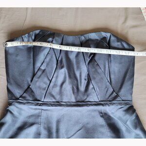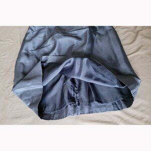 This dress is from J. Crew's bridesmaid collection. It is made with100% silk that is luxurious to touch and is fully lined. The colour is a beautiful blue with gunmetal (grey) undertone. Perfect for prom, wedding or any special occasion!