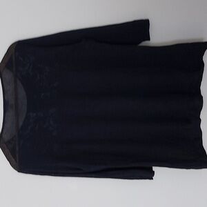 NWT J Jill Linen Blend Light Knit Crochet Embellished Sweater Navy Size 1X. 3/4 Length Sleeves.