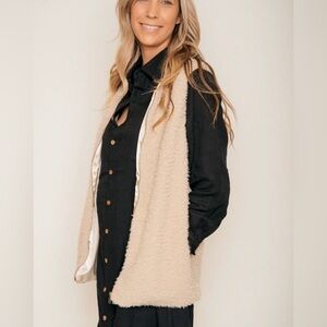 The Winter Fell Vest is a classic. Satin lined with a super soft teddy-inspired outer shell and piping detail, you'll want to pop this vest on top of everything you wear. Go ahead, we won't judge. Available in Egg Nog.