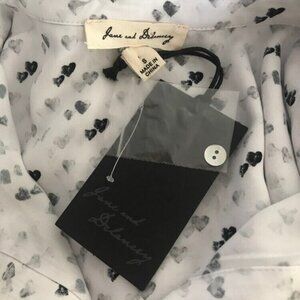NWT JANE & DELANCEY Long Sleeve Top Blouse Size Small Tab Sleeves Hearts Pattern