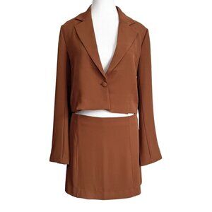 NWT JASON WU RUSSET BROWN SKIRT CROPPED BLAZER COORDINATED SET - M