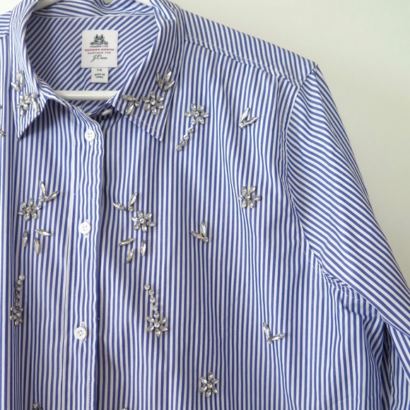 NWT J.CREW Collection Thomas Mason Embellished Shirt, Blue & White Stripe, Sz 16