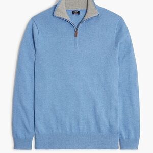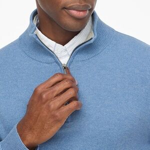 This J.CREW Knit Goods sweater is a must-have for any stylish man's wardrobe. The heather Heathered blue offers a trendy yet versatile look that can be dressed up or down. The tight-knit cotton fabric ensures both comfort and durability, making it a perfect choice for any season. Featuring a regular fit and long sleeves, this pullover sweater is machine washable for easy care. The 1/4 zip design adds a touch of sophistication, making it suitable for any occasion.