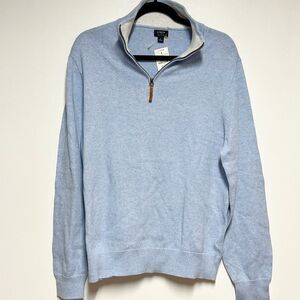 NWT J.Crew Cotton Quarter Zip Heathered Blue Pullover Sweater Sz L