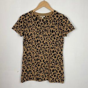 NWT J.Crew S 100% Cashmere Sweater Animal Leopard Print Short Sleeves