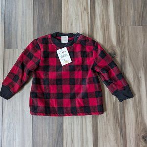 NWT JOE FRESH Baby Boys Fleece Top Red Plaid Check Neck Cardigan 12-18 M…