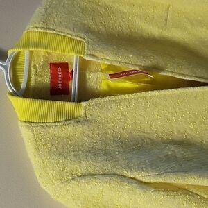 This pastel yellow coat features striking neon yellow accents, adding a pop of color and style to your cold-weather ensemble. Crafted from a blend of 50% polyester, 25% wool, and 25% acrylic, it offers both warmth and comfort.