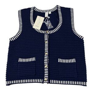 NWT JOIE Women's Sleeveless Navy White Striped Sweater Vest Size Medium