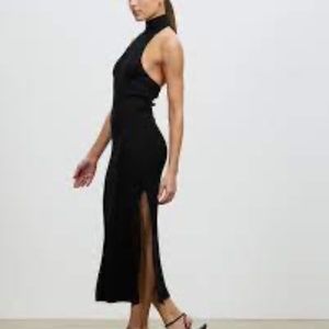 NWT JONATHAN SIMKHAI Ava Lace-Up Ribbed Knit Turtleneck Midi Dress L