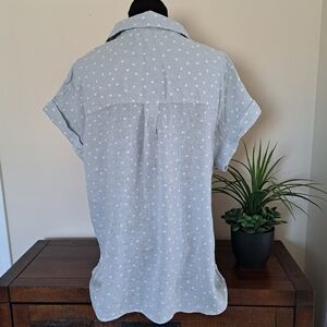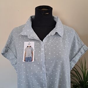 ❤️ NWT Jachs Girlfriend Short Sleeved Linen Blend Blouse Large Polka-dot Top