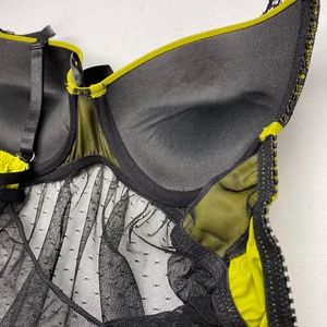 Not your classic nightgown! Love the green! Lace detail on the front of cup, bump up contoured foam padding, underwire and back closure. Sheer netting skirt.