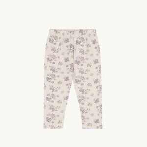 A Jamie Kay organic cotton set including the Selena Tofu print leggings and matching bodysuit-style camisole, paired with the Luna-colored modal cardigan.