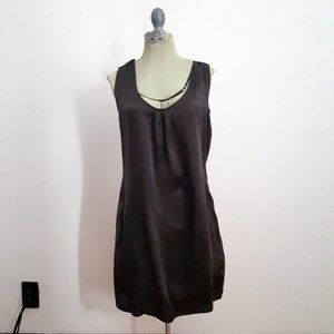 Beautiful Jenny Han charcoal black or anthracite 100% silk sleeveless dress, with sequins decorations at the shoulders, pretty open back that close with a small button and folds in the front. Never worn, still with tags.