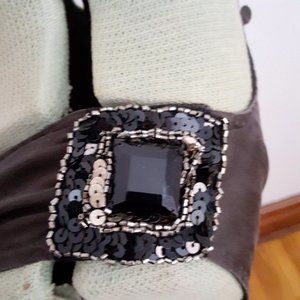NWT Jenny Han dark grey/black 100% silk sleeveless cocktail dress with sequins