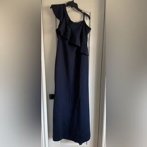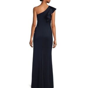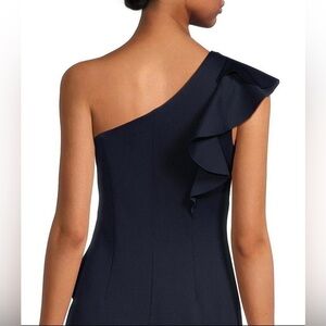 NWT Jessica Howard Sleeveless One Shoulder Ruffle Scuba Sheath Gown