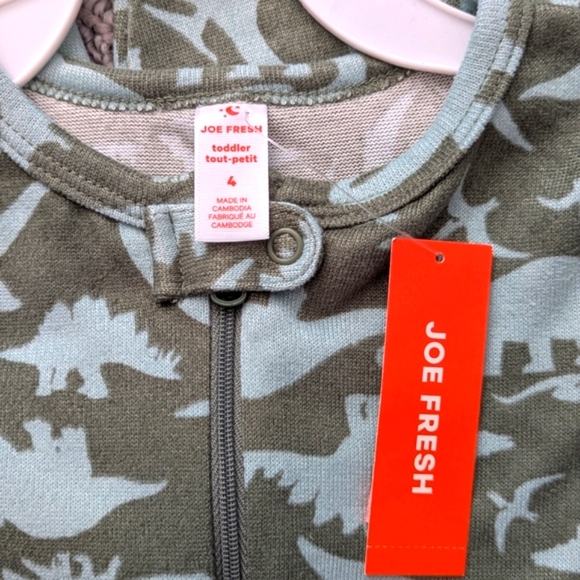 NWT Joe Fresh (Size 4T) Olive & Light Green Dinosaur Footless Pyjamas/Sleepers