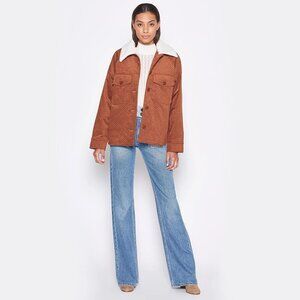 NWT Joie brown caramel faux sherpa collar button up printed jacket