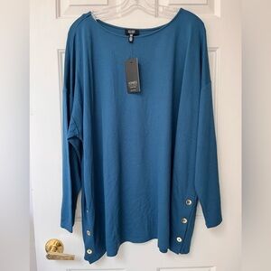 NWT Jones New York Signature Button Detail Tunic Top 3X Teal Blue