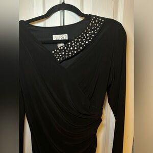 NWT Joseph Ribkoff - Classy Elegant Black Long Dress with Embellished Neckline
