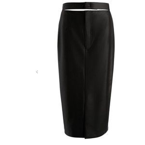 The tailored aesthetic is cleverly subverted with discreetly deconstructed detail - note the raw-edged opening between the front fastening and waistband. With front vent.