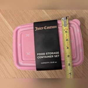 - 7 clear containers with 7 Juicy Couture initials signature pink & white lids