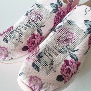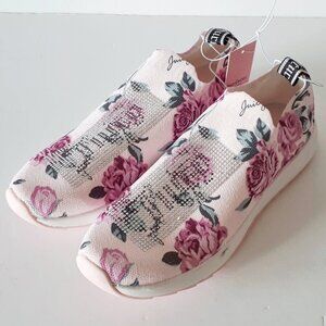 NWT Juicy Couture floral print and crystal embellished slip on knit sneakers, 10