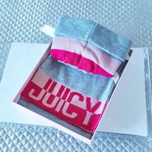 NWT Juicy Couture heather grey knit hat and scarf boxed set
