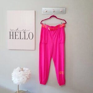 NWT Juicy Couture neon pink belted elastic waist logo jogger track pants, L