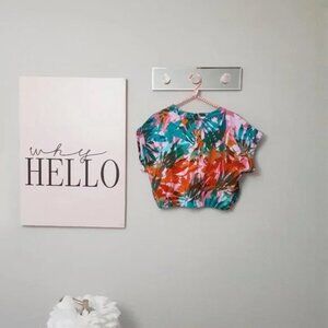 NWT Juicy Couture tropical palm combo print roll cuff French Terry crop top