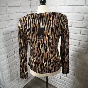 NWT Jules & Leopold Ladies Size Large Tan Black Beige Animal Print Blouse