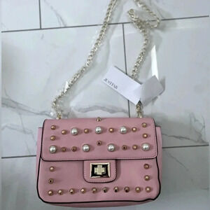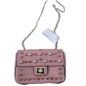 NWT JustFab/ Vegan leather/ Pink crossbody bag/ Pearl & Stud detail/ Gold chain
