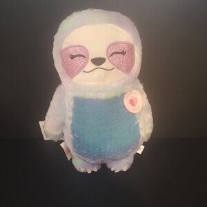 NWT Justice Blue & Purple Reversible Sequins Sloth w/ Marbled Soft Faux Fur 14"