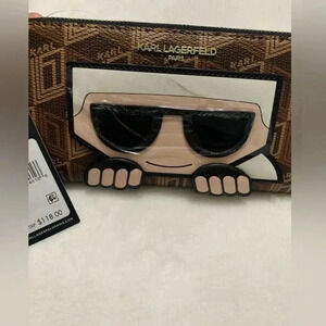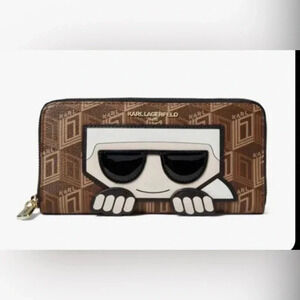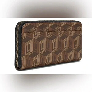NWT KARL LAGERFELD MAYBELLE SLG LARGE ZIP AROUND WALLET CLUTCH BAG BROWN LOGO
