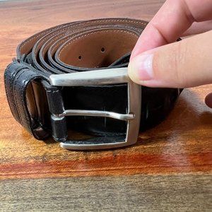 NWT KINGSPORT Black Genuine Leather Belt Brushed Silver Buckle (125/50)