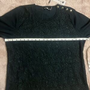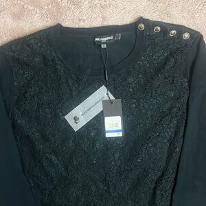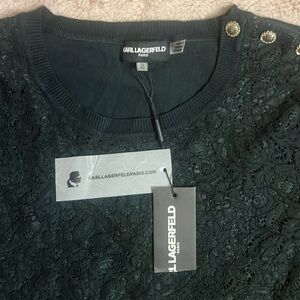 NWT Karl Lagerfeld deep green lace overlay sweater with metal button accents