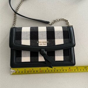 Stylish and versatile, this Kate Spade crossbody bag features a chic black and white checkered design. Perfect for any occasion, it adds a touch of elegance to your outfit.