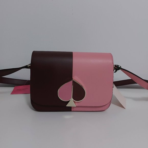Brand new with tags Kate Spade Nicola small bicolor leather shoulder bag. This bag can also be worn as a crossbody bag. The two colors [if not appearing on screen properly] are maroon and pink.