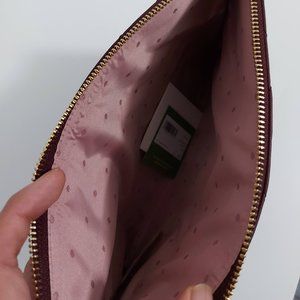 Brand new with tags Kate Spade Reese Park cherrywood/maroon Finely wristlet. The strap is removeable so it can be used as a clutch. Please note this leather is very delicate and has dents/scuffs on it.