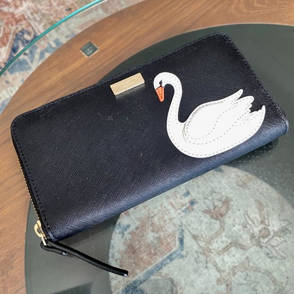 NWT Kate Spade Swan Black Wallet | Zip Around Purse Wristlet